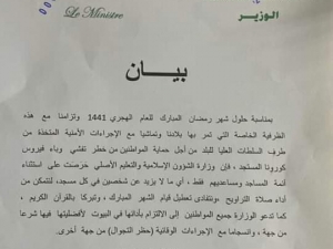 عاجل- بيان من وزارة التوجيه الاسلامي بشأن صلاة التراويح