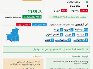 تضمنت النشرة اليومية التي تصدرها وزارة الصحة حول وباء كوفيد19 المستجد الحصيلة التالية وذلك ليوم 12 أبريل 2020: