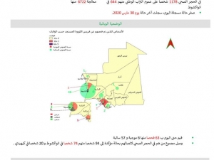 أشار التقرير اليومي الذي اصدرته وزارة الصحة صباح اليوم المخميس 02 ابريل حول الكورونا في موريتانيا إلي عدم زيادة الحالات المسجلة 6 حالات من بينها حالة وفاة واحدة