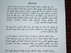 دعت اللجة الوزارية المكلفة بتسيير ومتابعة جائحة فيروس كورونا كوفيد 19 إلى الحد من حضور العمال في مقرات عملهم بإستثناء القوات المسلحة وقوات الأمن وقطاع الصحة ومصالح الانتاج دون أي مساس بأجور وأمتيازات العمال أو بأمن الشغل