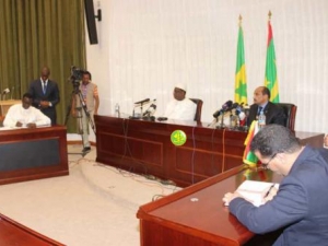 أجرى رئيس الجمهورية، السيد محمد ولد عبد العزيز، صباح اليوم الجمعة بقاعة الشرف في الجناح الرئاسي بمطار نواكشوط الدولي" أم التونسي" مباحثات على انفراد مع الرئيس السنغالي، السيد ماكي صال الذي بدأ اليوم زيارة صداقة وعمل لبلادنا