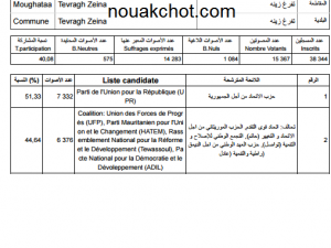 فاز حزب الاتحاد من اجل الجمهورية ببلدية تفرغ زين وقد حصلت صحيفة نواكشوط على محضر البلدية