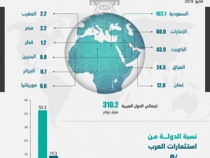 بلغت استثمارات الدول العربية في سندات وأذون الخزانة الأمريكية بنهاية شهر أيار (مايو) الماضي نحو 310