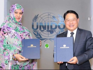 وقعت السيدة الناها بنت حمدي ولد مكناس, وزيرة التجارة والصناعة والسياحة في افيينا اليوم الجمعة مع المدير العام لمنظمة الأمم المتحدة للتنمية الصناعية السيد لي يونغ على اتفاق اطاري يهدف الى تعزيز دعم منظمة الأمم المتحدة للتنمية الصناعية للحكومة الموريتانية من خلال وضع خارطة طريق للتنمية الصناعية الشاملة والمستديمة في البلاد