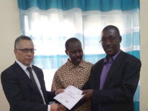 سلم الاستاذ احمد سالم ولد بوحبيني اليوم الخميس في العاصمة المالية باماكو باسم منظمة محامين بلا حدود و المجلس الوطني الفرنسي للمحامين إفادات تكوين وشهادات تقديرية لعدد من المحامين و القضاة الماليين بعد إنهائهم لثلاث دورات تكوينية تلقوها في مجال الآليات الدولية لحماية حقوق الانسان