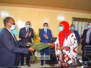 وقعت وزارة الصحة والصندوق الوطني للتأمين الصحي مع المندوبية العامة للتضامن الوطني ومكافحة الإقصاء(تآزر) اليوم الأربعاء بمقر وزارة الصحة في نواكشوط على اتفاقية شراكة يتم في إطارها دمج 100 ألف أسرة من الأسر الفقيرة في إطار نظام التأمين الصحي الشامل الذي يشرف عليه الصندوق الوطني للتأمين الصحي