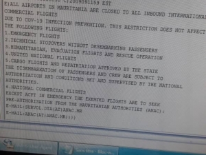 قررت السلطات الموريتانية تمديد قرار إغلاق مطار أم التونسي الدولي في وجه الرحلات الخارجية وذلك الي غاية الـ9 من سبتمبر المقبل